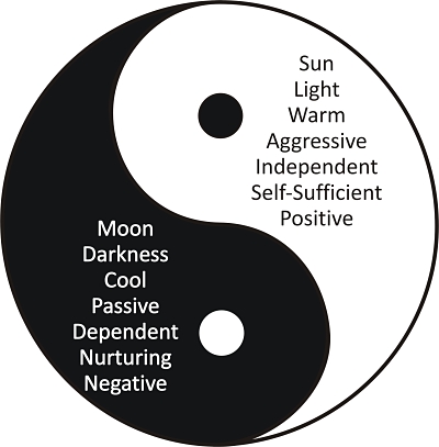 The foundation of this interdependent nature of Yin and Yang is a relationship called hsiang sheng, which means “mutual arising,” “dependent arising,” or “inseparability” (Watts, 1977; Mair, 1990). Hsiang sheng tells us that one pole of a system (event, concept, etc.) cannot arise in isolation. Its complimentary pole must arise with it as the ground against which it is perceived. For example, when we perceive tallness, we must simultaneously perceive a background of shortness. We cannot create a goal without, at the same time, creating obstructions to that goal. Movement cannot exist except in relation to resistance or stillness. Inherent in a problem is its own solution. Focusing on good accentuates evil.